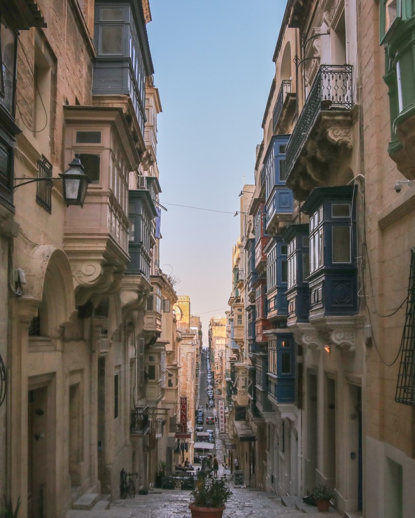 Zacznijmy od stolicy. Jak już mówiliśmy na wstępie, jest to miejsce, w którym miesza się wiele kultur. Na pierwszy plan wybijają się tutaj maltańskie domy z kolorowymi drzwiami, okiennicami oraz balkonami, gdzie widać wpływy kultury arabskiej. Swoją drogą przyszło nam nocować w jednym z nich i było to ciekawe doświadczenie. Zwłaszcza gdy widzieliśmy za oknem ludzi, którzy robili sobie zdjęcia na tle naszych drzwi. Link do noclegu znajdziecie TUTAJ (pojawi się asap!). Innym wpływem kulturowym są porozsiewane po ulicach budki telefoniczne, które są pozostałością po imperium brytyjskim.