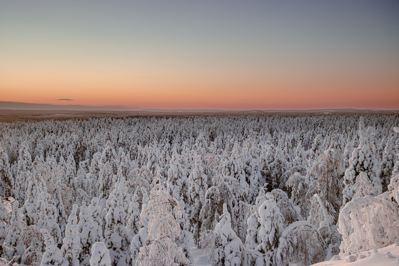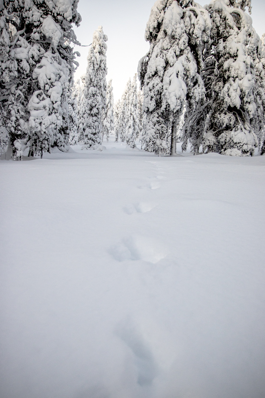 Skoro przedstawiłem już rower to przejdźmy do najlepszej atrakcji mojego wyjazdu, czyli szosowaniu po ośnieżonych lasach. Tuż przy Santa Sport znajduje się wytyczona i przygotowana trasa wiodąca na wzgórze Ounasvaara. Powiem Wam, że pomimo kilku upadków i ciężkiej jazdy pod górkę, bawiłem się świetnie, a widoki jakie zastałem po drodze i na szczycie, były najlepszymi widokami tego wyjazdu.